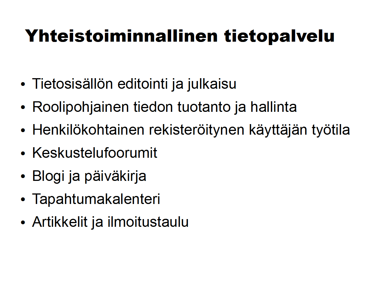 Best Practices / Benchmarking - Parhaat Käytännöt / Vertailuanalyysi: Tuotetaan palveluna yhteisöllisten toimintaympäristöjen, yhteisöjärjestelmien ja etätyön verkostotyökalujen kartoitus ja soveltuvuusvertailu. Lähtökohtana tässä on asiakkaan toiminnolliset käyttötarpeet ja vaatimukset.